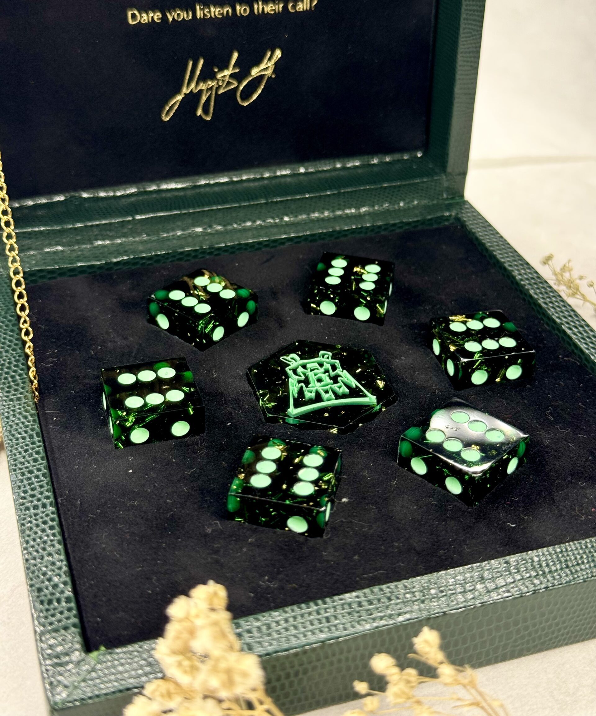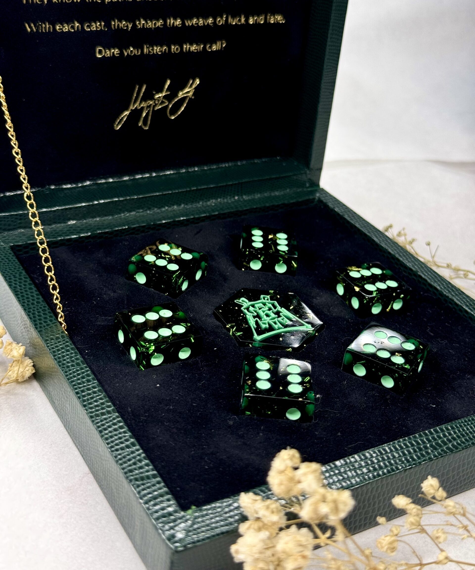 The handmade box not only enhances presentation but also offers durable protection, keeping your dice safe and beautifully stored for years to come.