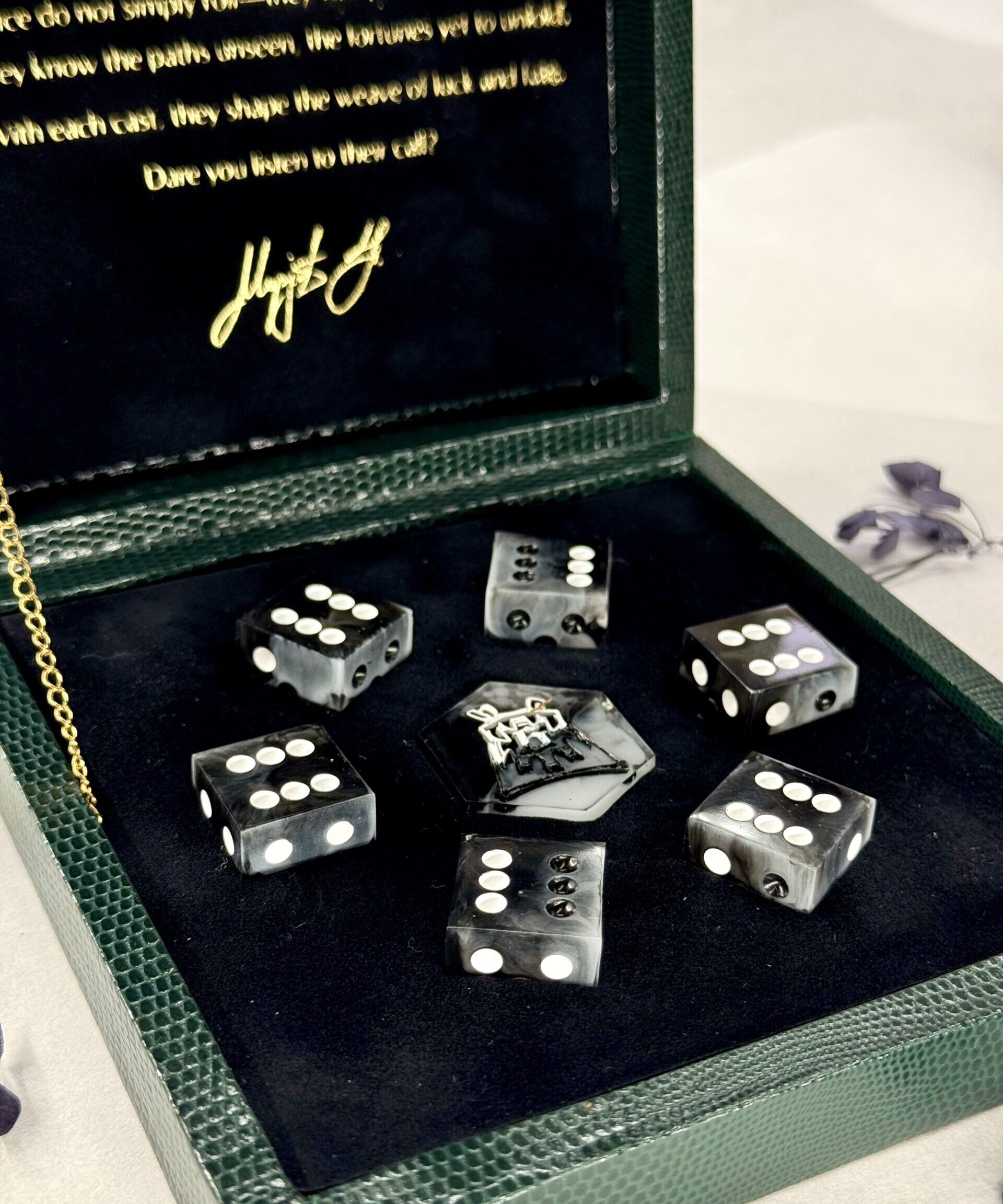 The handmade box not only enhances presentation but also offers durable protection, keeping your dice safe and beautifully stored for years to come.