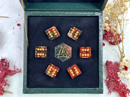 The handmade box not only enhances presentation but also offers durable protection, keeping your dice safe and beautifully stored for years to come.