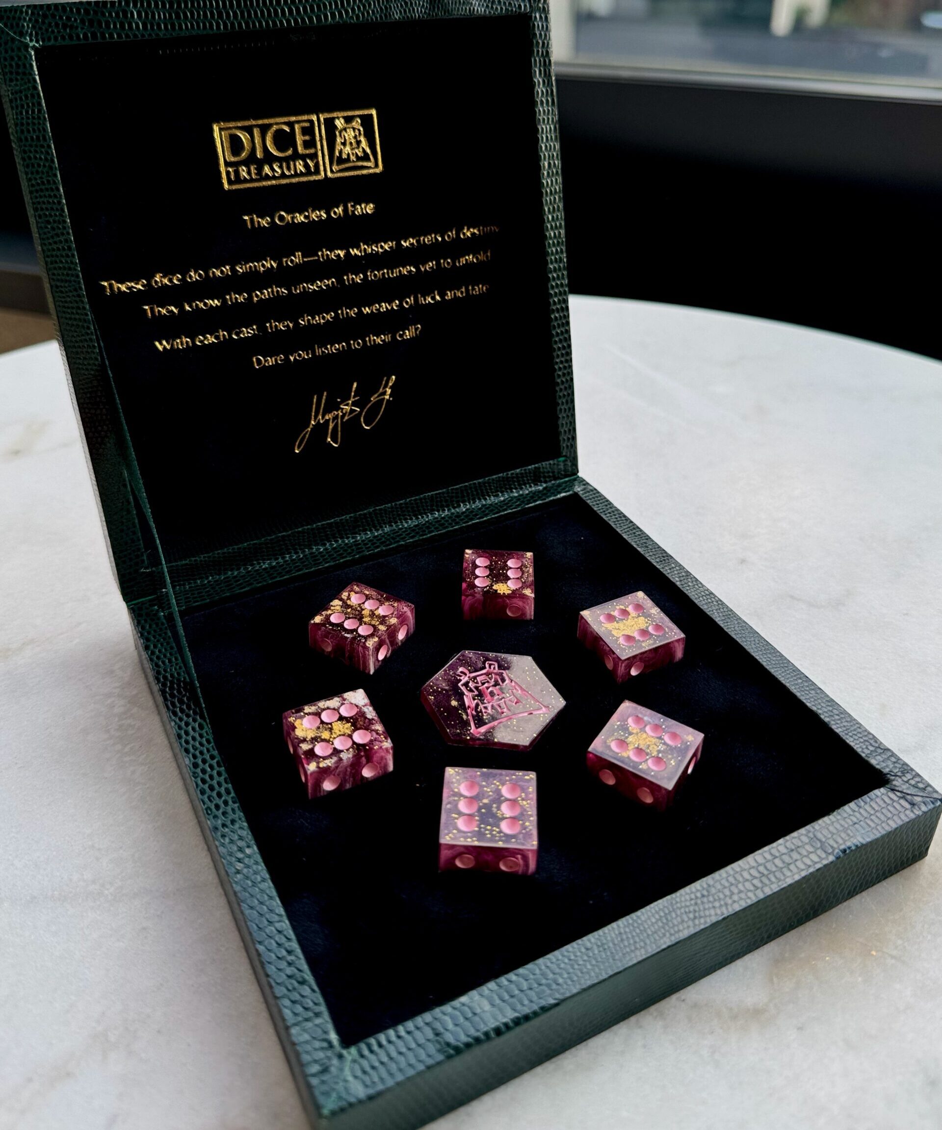 The handmade box not only enhances presentation but also offers durable protection, keeping your dice safe and beautifully stored for years to come.