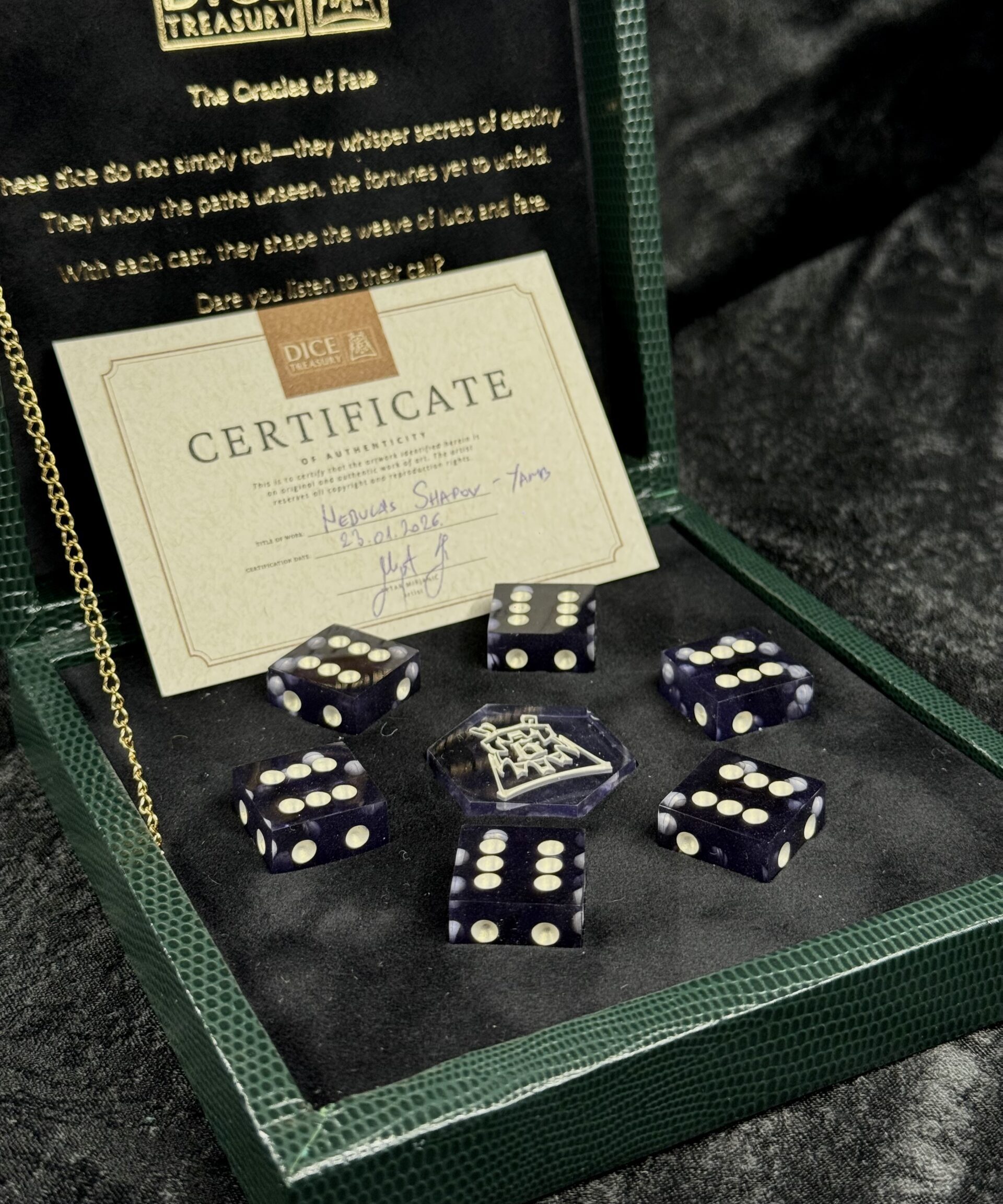 The handmade box not only enhances presentation but also offers durable protection, keeping your dice safe and beautifully stored for years to come.