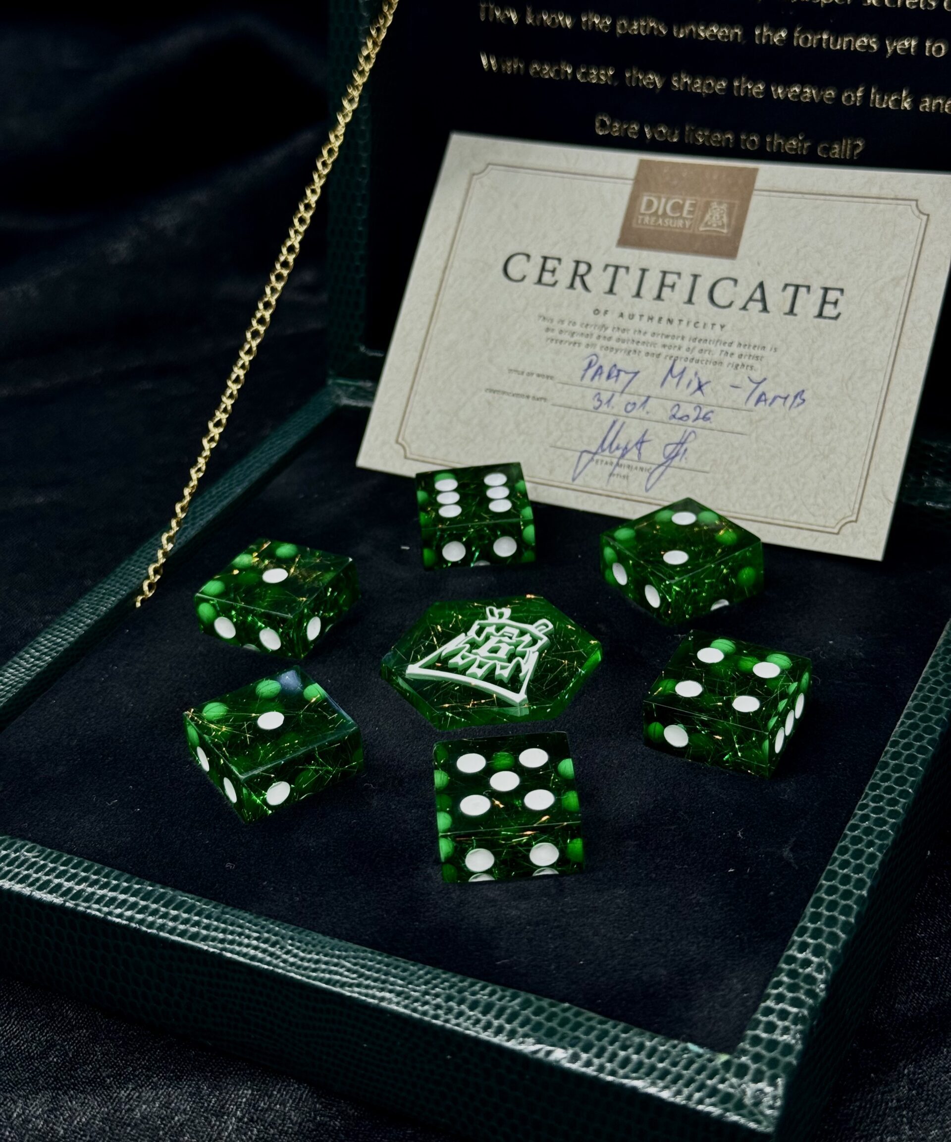 The handmade box not only enhances presentation but also offers durable protection, keeping your dice safe and beautifully stored for years to come.