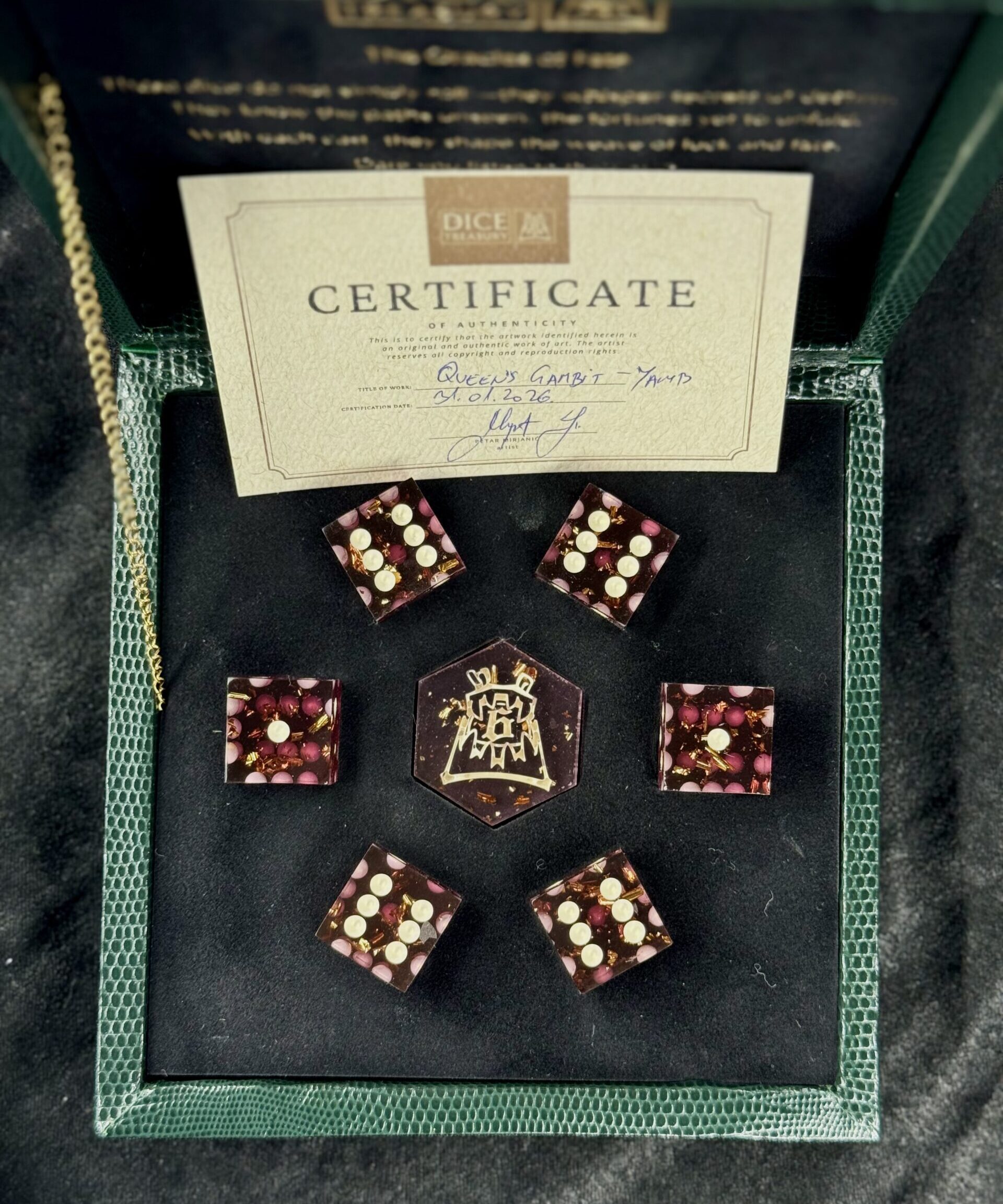 The handmade box not only enhances presentation but also offers durable protection, keeping your dice safe and beautifully stored for years to come.